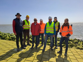 Am 25.05.2023 besichtigte die Bezirksgruppe Nordfriesland eine aktuelle Baumaßnahme in Dagebüll. Die Pierplatte Dagebüll wird derzeit instandgesetzt. Dabei wird die Pierplate zu einem Fangedamm umgebaut. Es wurden rd. 500 t Spundwandstahl der gegenseitig mit Horizontalankern rückverankerten Spundwände verbaut. Zum Zeitpunkt der Besichtigung waren die Betonarbeiten der Spundwandholmne und der Niedrigwassertreppe sowie die Verfüllarbeiten zu sehen.